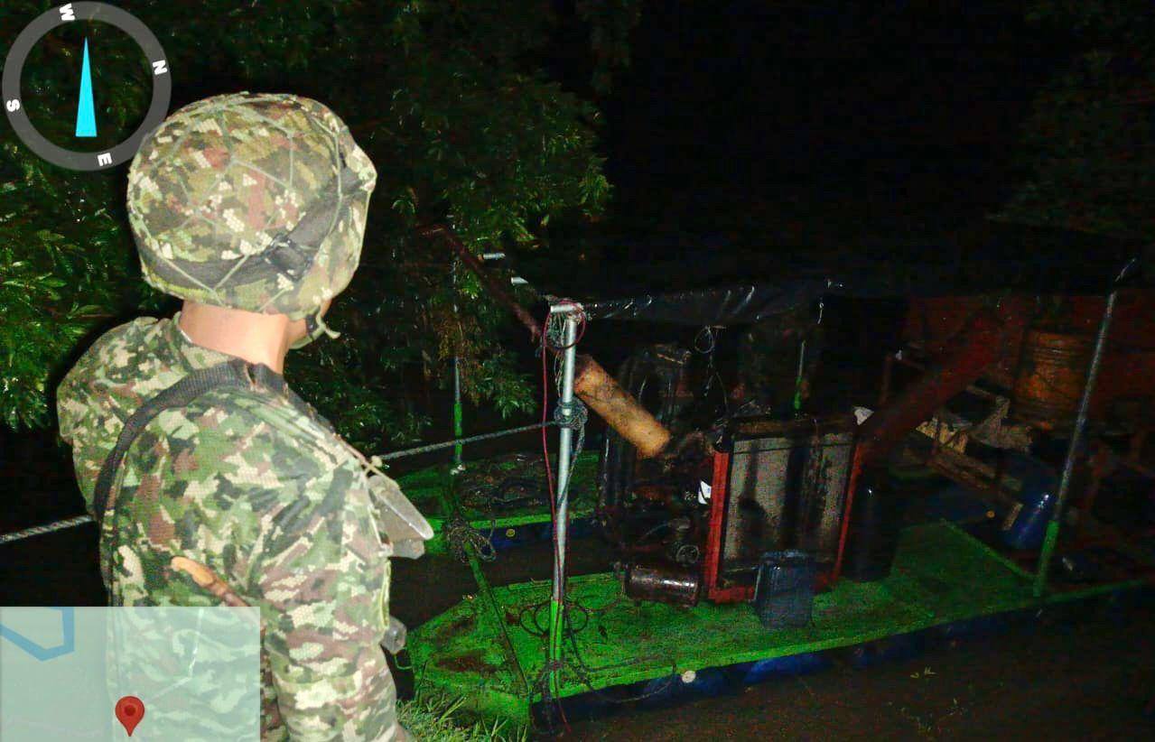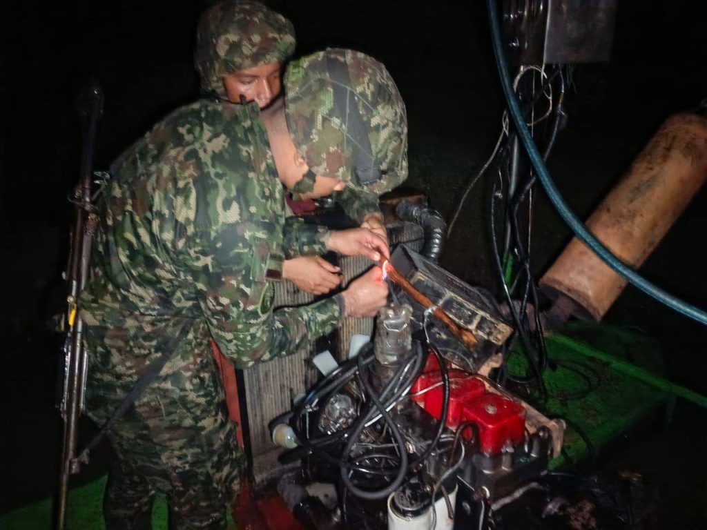 En el sitio, las autoridades inutilizaron una draga tipo buzo, dos motores y una clasificadora, elementos mecanizados que presuntamente estarían al servicio de la Subestructura Rubén Darío Ávila del grupo armado organizado Clan del Golfo.