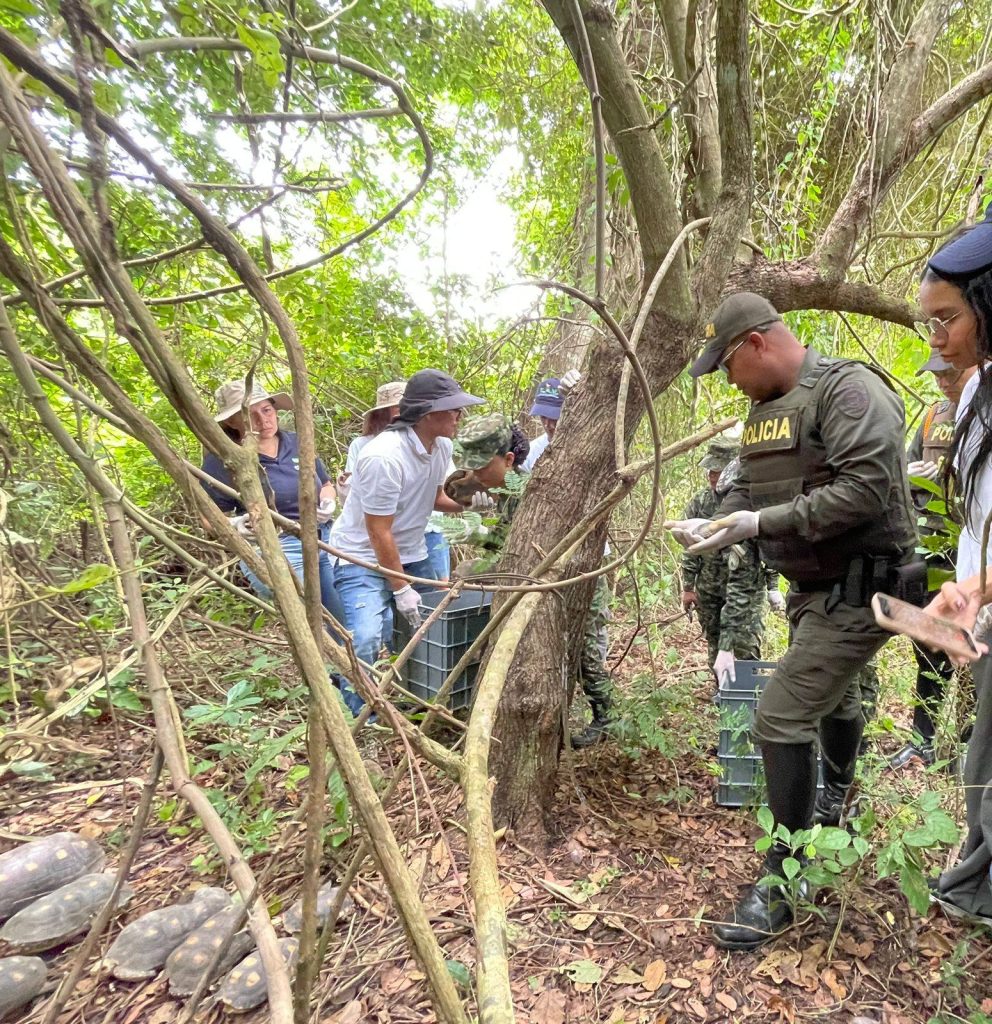 En una acción de corresponsabilidad sin precedentes, el Grupo de Policía Ambiental y Recursos trabajó de la mano con la CAR-CVS y el Ejército Nacional (Brigada XI) para devolver a su hábitat natural a un total de 34 animales que habían sido rescatados y rehabilitados.