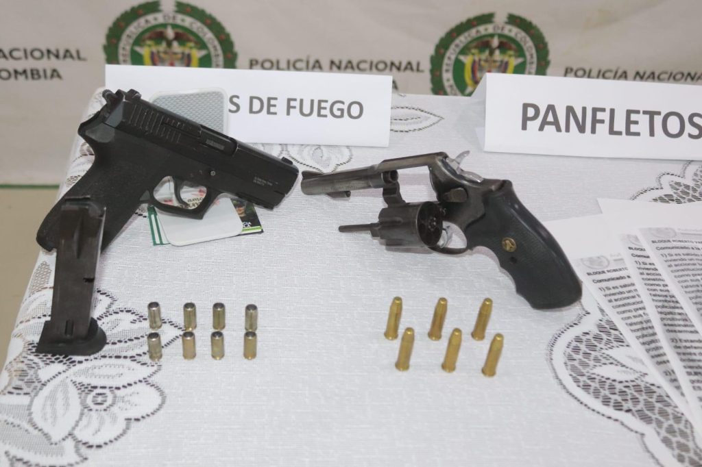 Durante la operación fueron incautadas dos pistolas, cartuchos de diferentes calibres, panfletos alusivos al grupo armado, tarjetas de cobro, una libreta de contabilidad y dinero en efectivo.