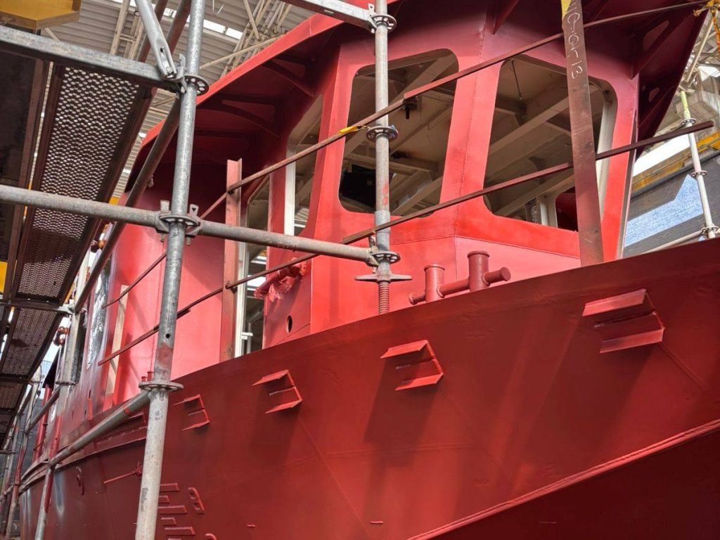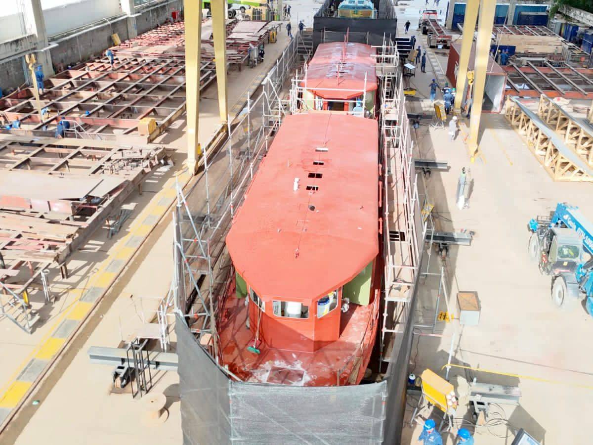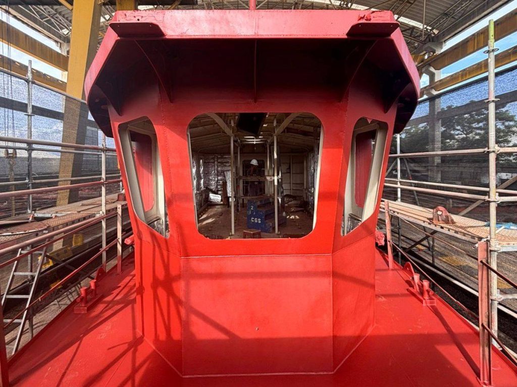 De acuerdo con el más reciente reporte de la Gerencia de Planta de Construcciones de Cotecmar, los trabajos actuales incluyen la preparación de superficies de tanques y cabina, la finalización de las pruebas neumáticas, el inicio de pintura y la instalación de cableado eléctrico, rejillas y soportes de iluminación.