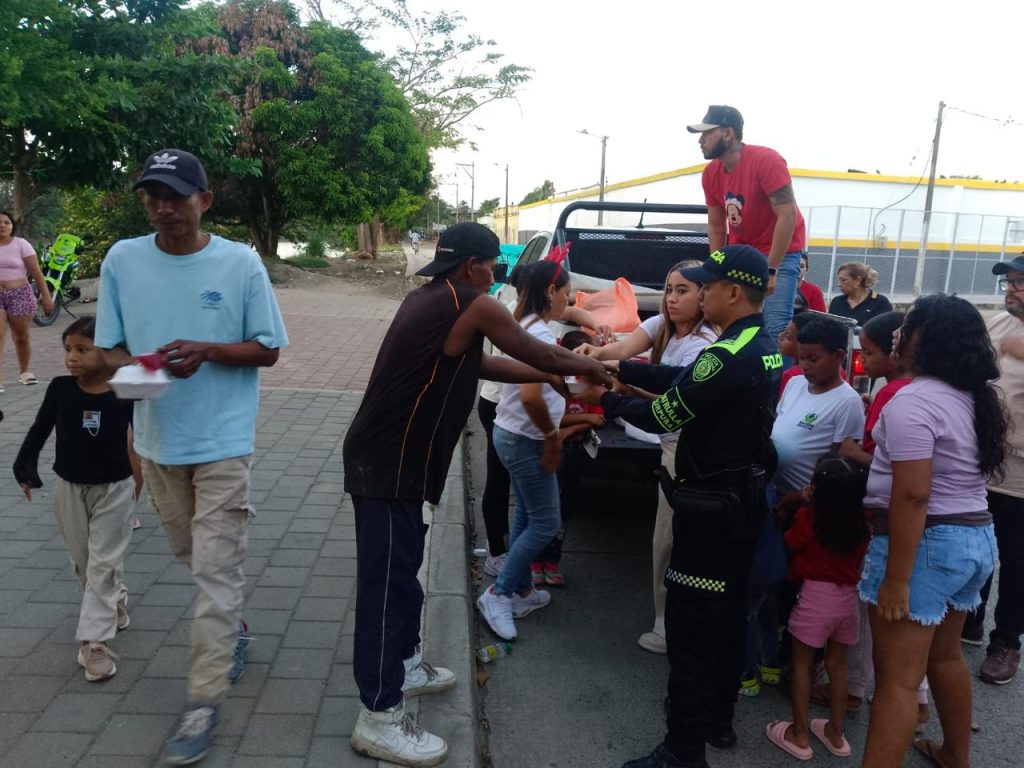 En el marco del Plan “Una Navidad con Propósito”, la Policía Nacional en Montería, a través de la Patrulla Púrpura, en articulación con personas voluntarias del municipio de Montería, realizó una jornada solidaria de entrega de alimentos a habitantes de calle en el barrio Sucre.