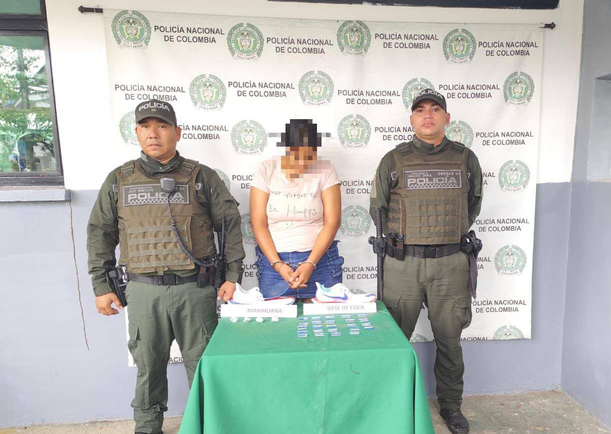 En el procedimiento se encontraron 24 dosis de una sustancia que por sus características se asemeja al clorhidrato de cocaína, así como cuatro envolturas con características similares a la marihuana. De manera inmediata, se procedió a informar y materializar los derechos que le asisten como persona capturada por el delito de tráfico, fabricación o porte de estupefacientes y dejada a disposición de la autoridad competente.