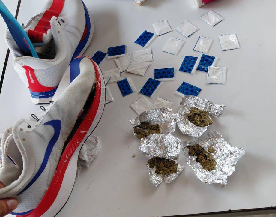 El hecho se registró cuando el personal policial realizaba los protocolos de verificación y control de elementos a los ciudadanos que visitan a las personas detenidas en el centro de reclusión. Durante la inspección exhaustiva de una bolsa de color blanco que portaba una mujer, se hallaron ocultas al interior de unos zapatos deportivos varias sustancias ilícitas.