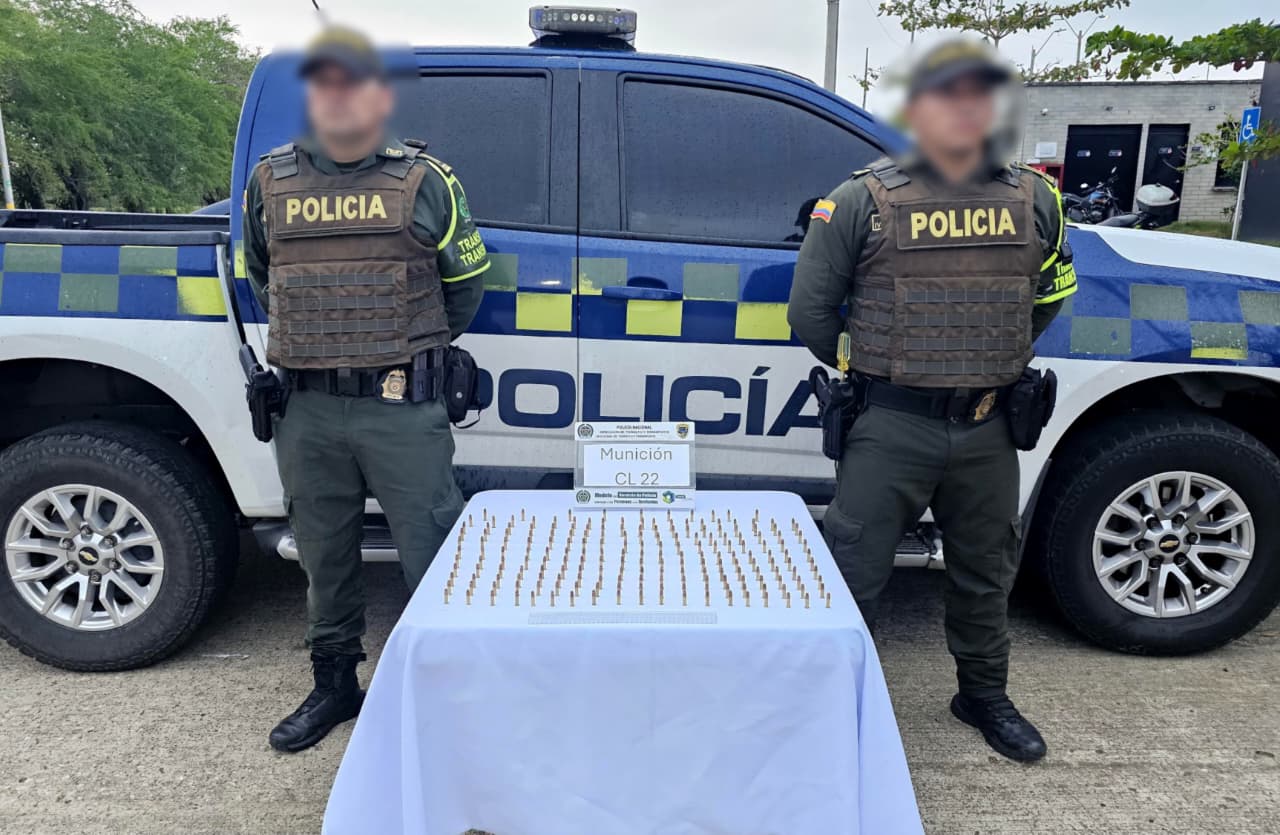 La Seccional de Tránsito y Transporte de la Policía en Córdoba, logró en las últimas horas la incautación de 200 cartuchos calibre 22, avaluados en $2.000.000, en la vía que conduce del municipio de Caucasia a Planeta Rica.
