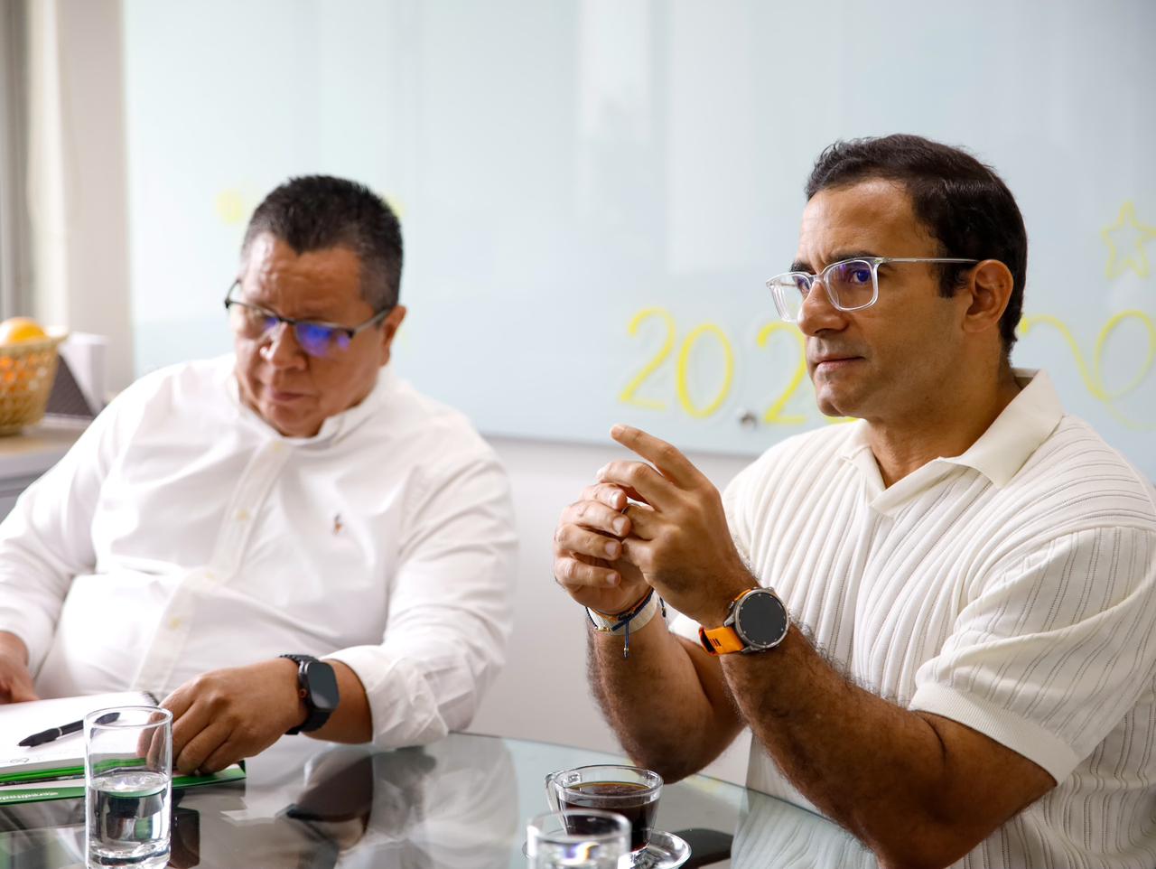 El alcalde de Montería, Hugo Kerguelén García, y el rector de la Universidad de Córdoba, Jairo Torres Oviedo, sostuvieron una reunión de trabajo con sus respectivos equipos técnicos y académicos, con el propósito de articular acciones estratégicas que fortalezcan el acceso a la educación superior, amplíen la oferta institucional en el sur de la ciudad y consoliden procesos de bilingüismo en el territorio.