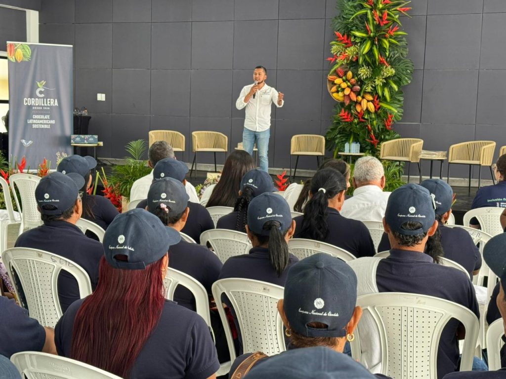 Jorge León, líder de Sostenibilidad de la Marca Cordillera, de la Compañía Nacional de Chocolates, manifestó que este programa formativo cuenta con cuatro módulos para el fortalecimiento de las capacidades de los cacaocultores.