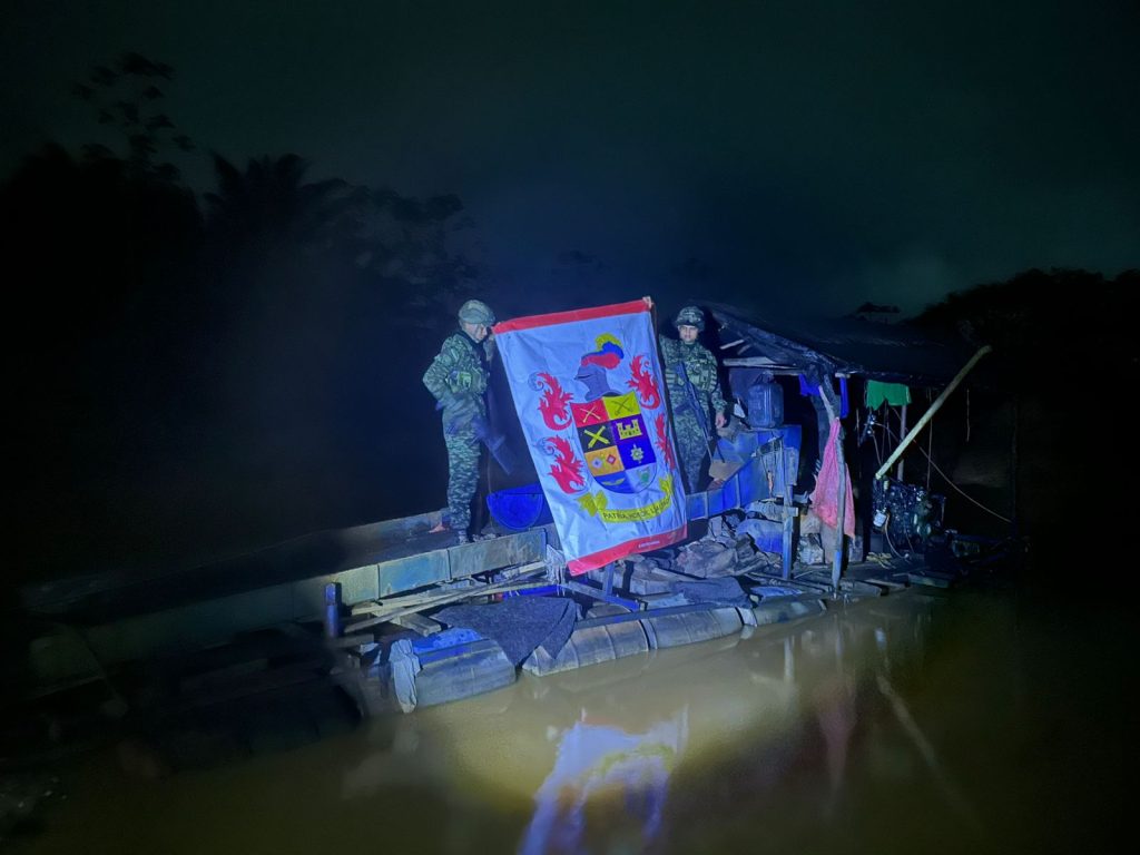 Tropas del Batallón de Selva N.° 57, adscritas a la Décima Primera Brigada, junto con la Brigada contra la Minería Ilegal del Ejército Nacional y el CTI de la Fiscalía General de la Nación, realizaron la intervención a 5 unidades productoras mineras, logrando el hallazgo de maquinaria y material empleados para la explotación ilícita de yacimientos mineros.