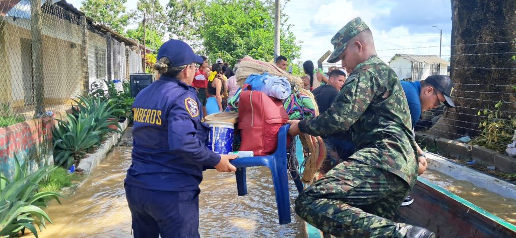 Soldados de la Brigada 11 del Ejército están brindando apoyo a cientos de familias que se encuentran afectadas por la creciente ola invernal que viene azotando con fuerza al departamento de Córdoba, especialmente a los habitantes de poblaciones ribereñas de los ríos Sinú y San Jorge.