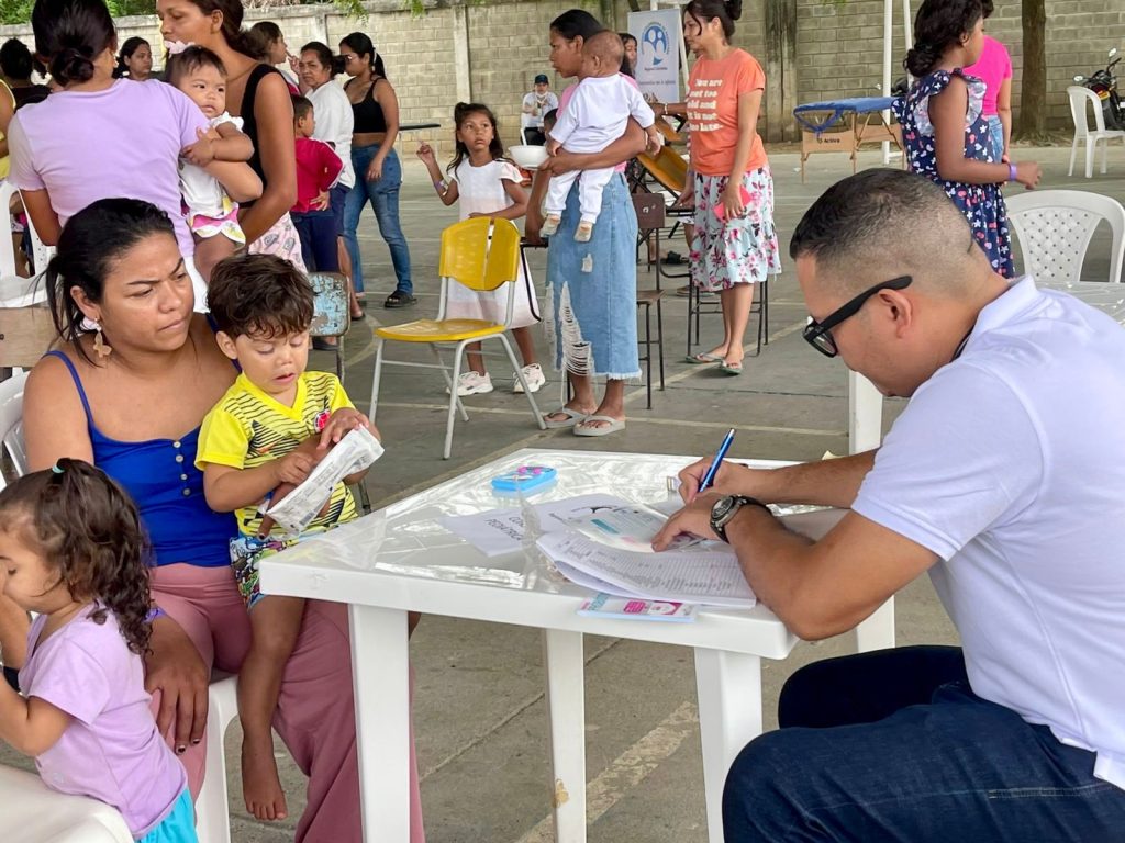 La Sociedad Colombiana de Pediatría atendió el llamado de la Secretaría de Salud Municipal y dispuso de sus profesionales para desarrollar una brigada de atención integral dirigida a niños y niñas ubicados en el alojamiento temporal habilitado por la Alcaldía de Montería en la Institución Educativa San José.