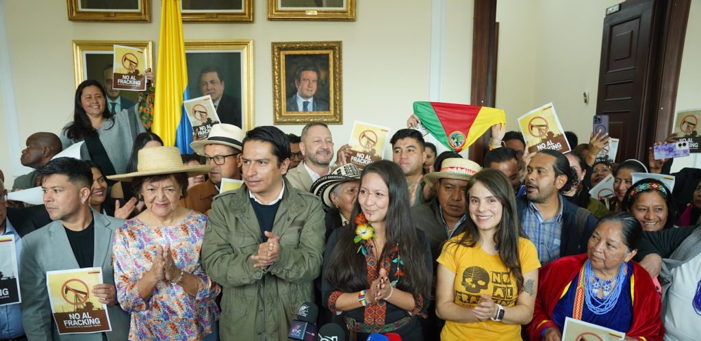 La ministra de Ambiente y Desarrollo Sostenible, Lena Estrada, radicó hoy ante el Congreso de la República el Proyecto de Ley que busca prohibir, en todo el país, la exploración y explotación de yacimientos no convencionales de petróleo y gas, así como el uso de la técnica conocida como fracking. Esta práctica pone en riesgo la vida de las comunidades y la salud de los ecosistemas.