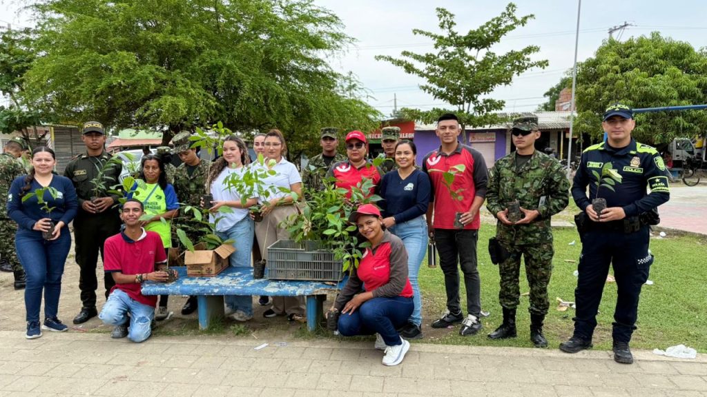 Montería, Córdoba. La Policía Nacional en Montería, a través del Grupo de Policía Comunitaria, en coordinación con la Junta de Acción Comunal, el Ejército Nacional, la empresa Veolia y la CVS, realizó jornada de siembra de árboles en el parque del barrio Villa Cielo, en conmemoración del Día Internacional del Árbol.