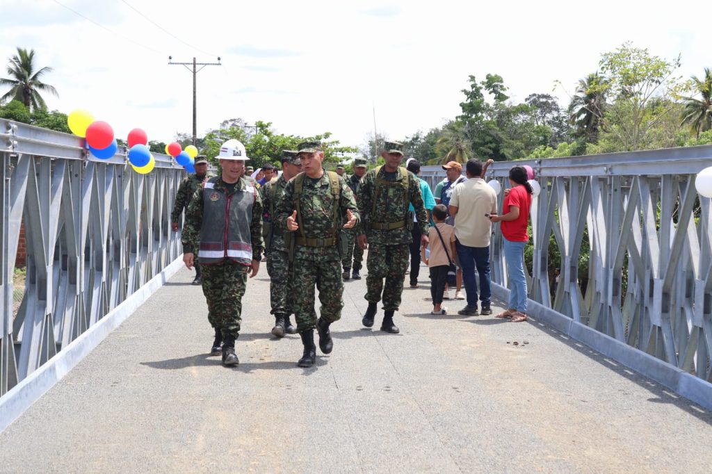 El trabajo articulado entre los Ingenieros Militares, la Alcaldía de Guaranda, Sucre y la Unidad Nacional para la Gestión del Riesgo de Desastres, permitió la instalación de un puente metálico modular semipermanente tipo Acrow de 60 metros de longitud en el corregimiento Las Cejas, estructura instalada sobre la quebrada Ventanilla, que reconecta a más de 15 mil personas de zonas rurales de este municipio, así como del municipio de Majagual.