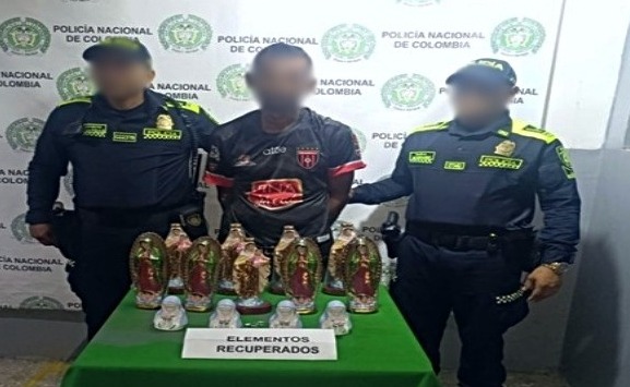 Al verificar la situación, se constató que el ciudadano estaba extrayendo varios elementos del interior de un establecimiento comercial identificado con el nombre “Muebles y Variedades Campamento”. En el lugar se hallaron 13 imágenes religiosas elaboradas en yeso, las cuales ya se encontraban dentro de la bolsa color naranja que portaba el individuo.