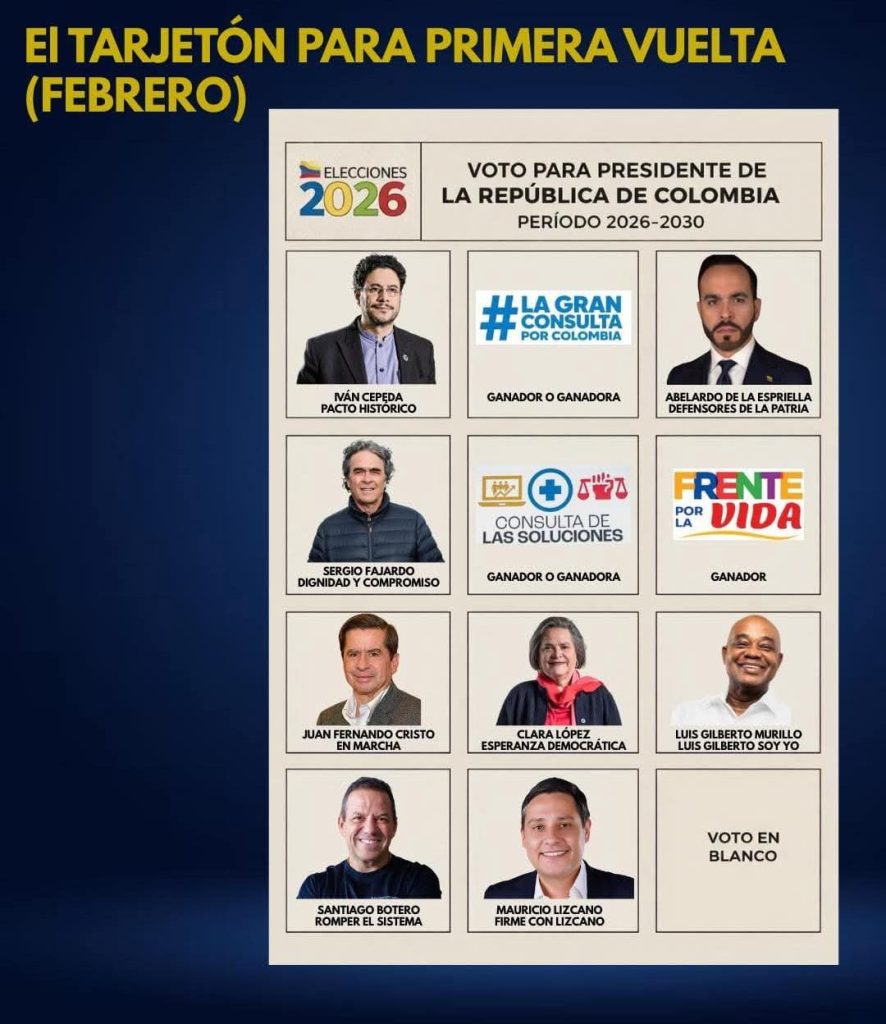Así va el tarjetón presidencial para la primera vuelta del 31 de mayo.
