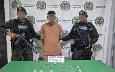 La Policía Metropolitana de Montería, a través del Grupo de Operaciones Especiales (GOES), se logró la captura en flagrancia de un ciudadano por el delito de tráfico, fabricación o porte de estupefacientes. Los hechos se presentaron en el barrio Robinson Pitalúa, donde los uniformados del GOES se encontraban realizando labores de patrullaje, apoyo, registro y…